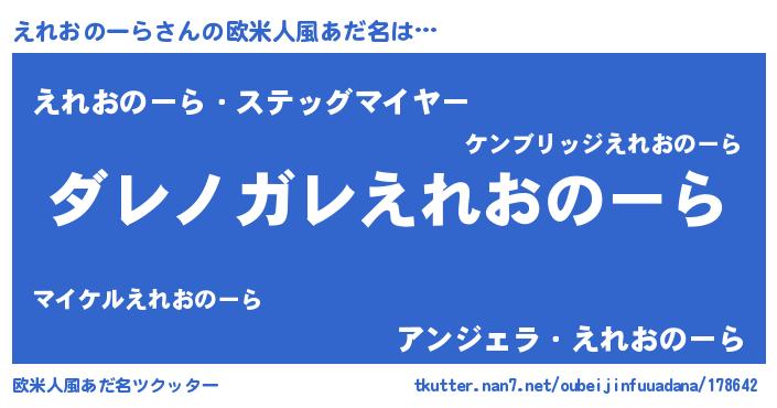 | 意味不明あだ名 | 『住所不定無職えれおのーら(6歳)』 |