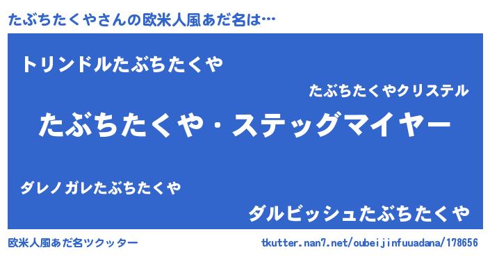| 胡散臭い通販商品みたいなあだ名 | 『絶対に幸福をもたらす健康食品…その名も「たぶちたくや」』 |