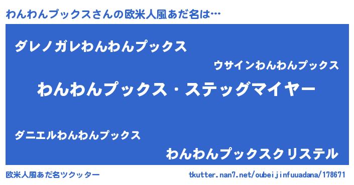 | 男性向けラノベタイトル風あだ名 | 『緋弾のワンワンプックス』 |