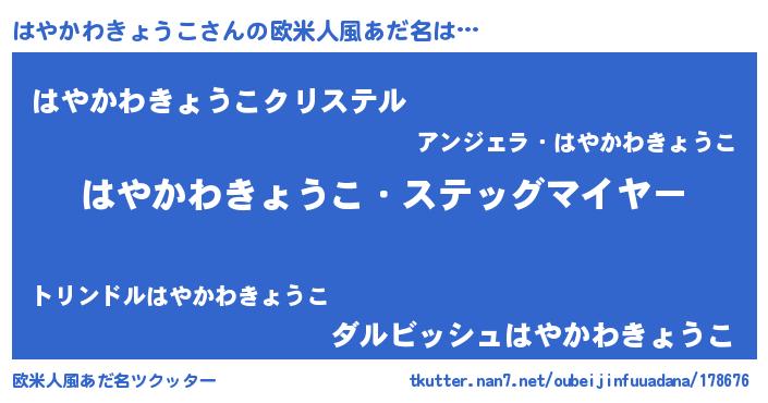 | 意味不明あだ名 | 『はやかわきょうこフォーエバー』 |