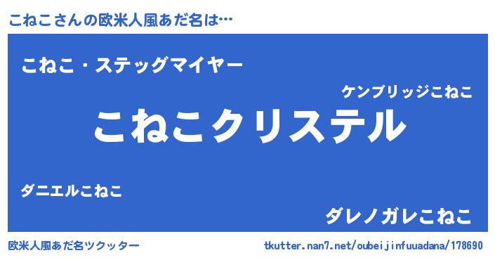| 女子向けラノベタイトル風あだ名 | 『こねこの婚約者』『こねこ恋絵巻』 |
