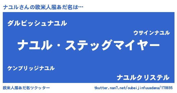 | ファンタジー風あだ名 | 『カークナユラー』『ナユディッシュ』 |