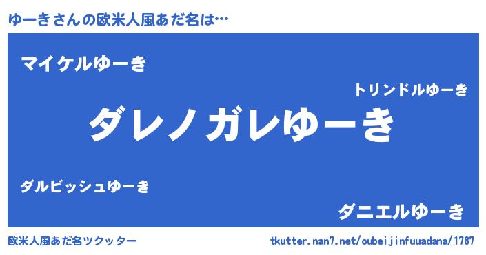 | 男性向けラノベタイトル風あだ名 | 『魔弾の王とゆーき』『ゆーきの憂鬱』 |