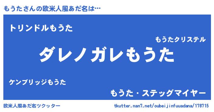 | 意味不明あだ名 | 『住所不定無職もうた(12歳)』『自称もうた』 |
