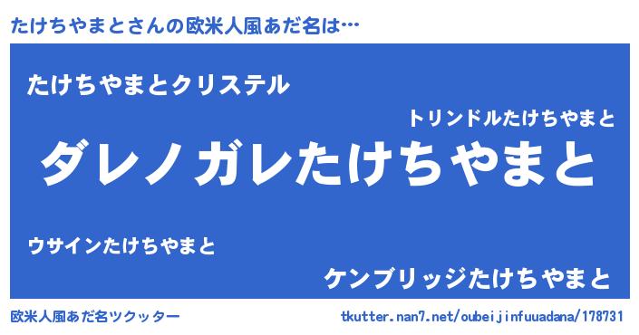 | 意味不明あだ名 | 『住所不定無職たけちやまと(91歳)』 |
