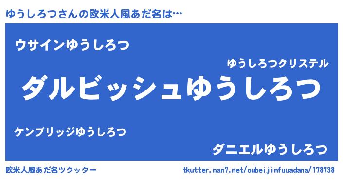 | 男性向けラノベタイトル風あだ名 | 『ゆうしろつという概念が存在しない退屈な世界 』 |