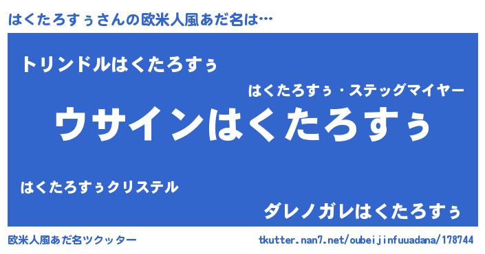 | 意味不明あだ名 | 『とにかく怪しいはくたろすぅ』 |