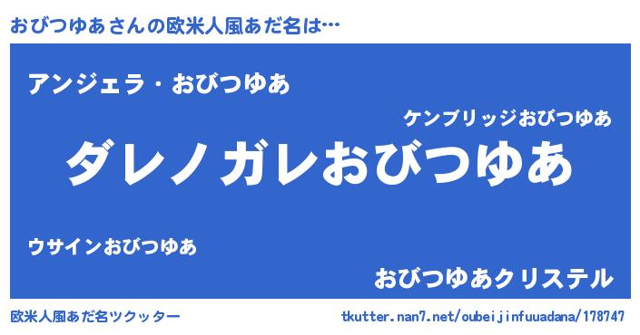 | 意味不明あだ名 | 『住所不定無職おびつゆあ(53歳)』 |