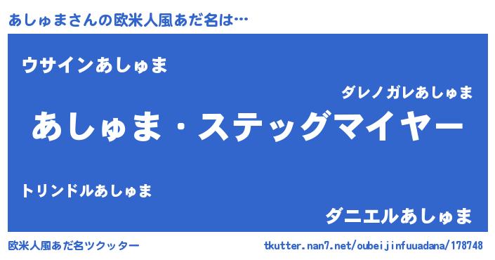 | 意味不明あだ名 | 『とにかく怪しいあしゅま』 |