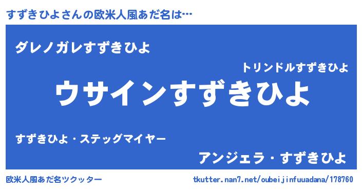 | ポケモン風あだ名 | 『ヒスズキヒヨ』『スーズイ』 |