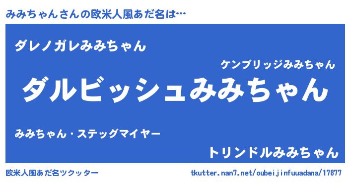 | 男性向けラノベタイトル風あだ名 | 『みみちゃんという概念が存在しない退屈な世界 』 |