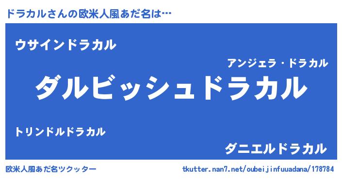 | 男性向けラノベタイトル風あだ名 | 『誰もが恐れるあのドラカルが、ぼくの専属メイドになるようです。』 |