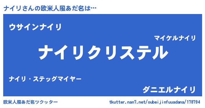 | ポケモン風あだ名 | 『ナイリダネ』『ヒナイリ』 |