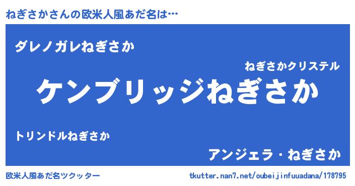 | 男性向けラノベタイトル風あだ名 | 『魔法科高校のねぎさか』 |