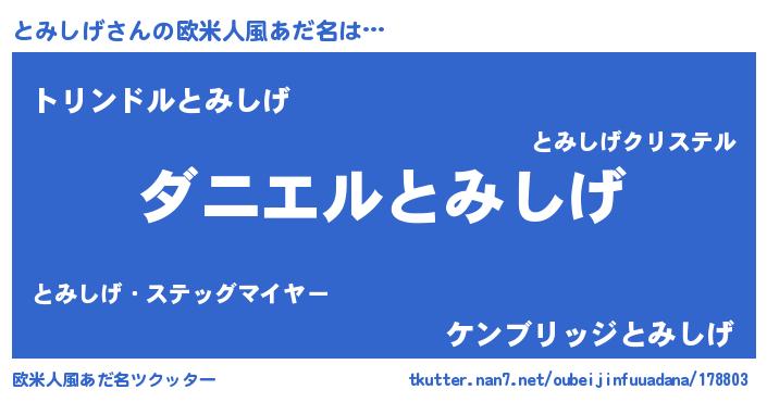 | 女子向けラノベタイトル風あだ名 | 『死神とみしげの再婚』『闇のとみしげ』 |