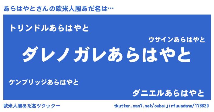 | 意味不明あだ名 | 『住所不定無職あらはやと(7歳)』 |