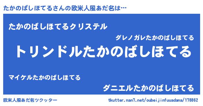 | 意味不明あだ名 | 『ヨモギ科たかのばしほてる属』 |