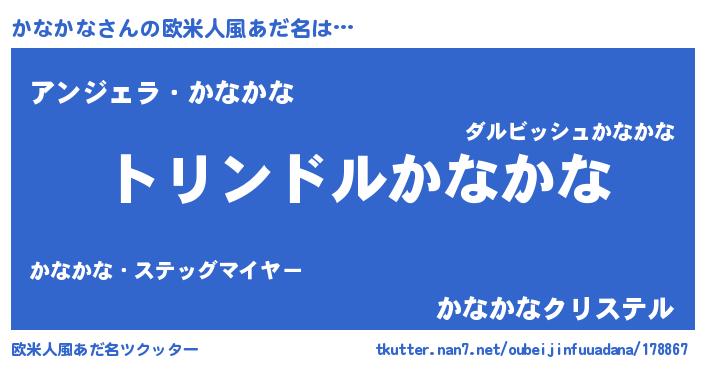 | 男性向けラノベタイトル風あだ名 | 『かなかな~年齢イコール彼女いない歴の魔法使い~』 |
