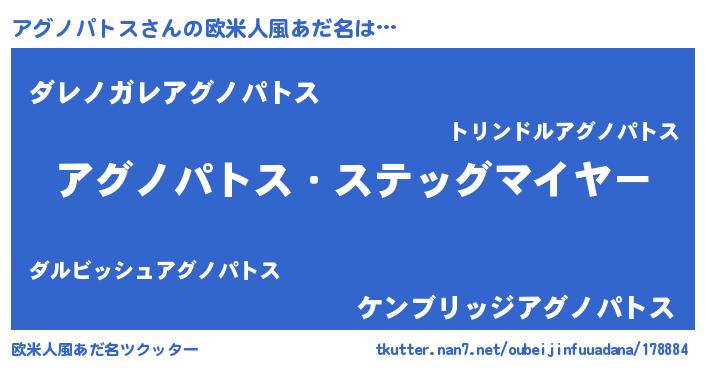 | ヘコむあだ名 | 『アグノパトス(小並感)』『アグぷりん』 |
