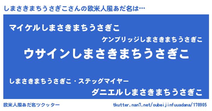 | 意味不明あだ名 | 『とにかく怪しいしまさきまちうさぎこ』 |