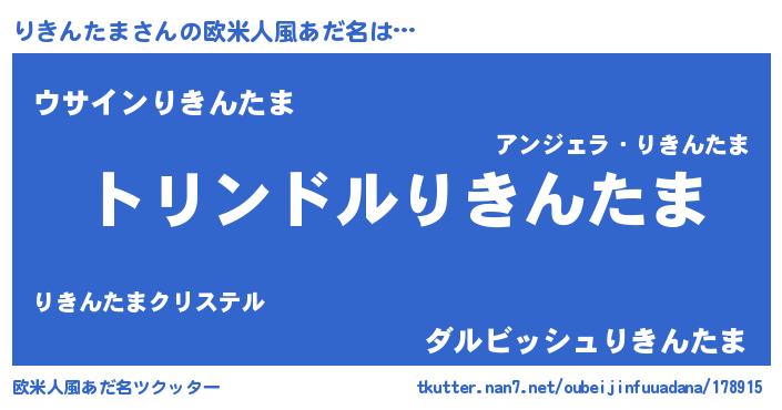 | 男性向けラノベタイトル風あだ名 | 『りきんたま~年齢イコール彼女いない歴の魔法使い~』 |