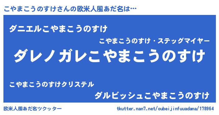 | 男性向けラノベタイトル風あだ名 | 『魔弾の王とこやまこうのすけ』 |