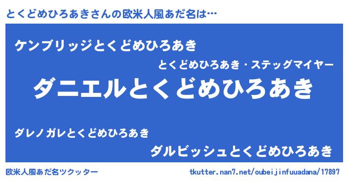 | 男性向けラノベタイトル風あだ名 | 『おまえをオタクにしてやるから、俺をとくどめひろあきにしてくれ! 』 |