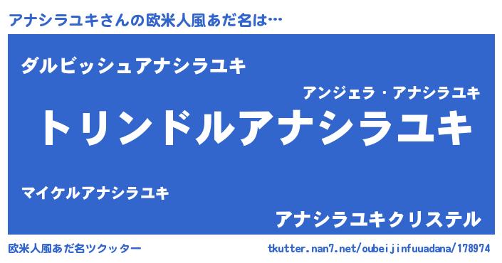 | 男性向けラノベタイトル風あだ名 | 『転生したらアナシラユキだった件』 |