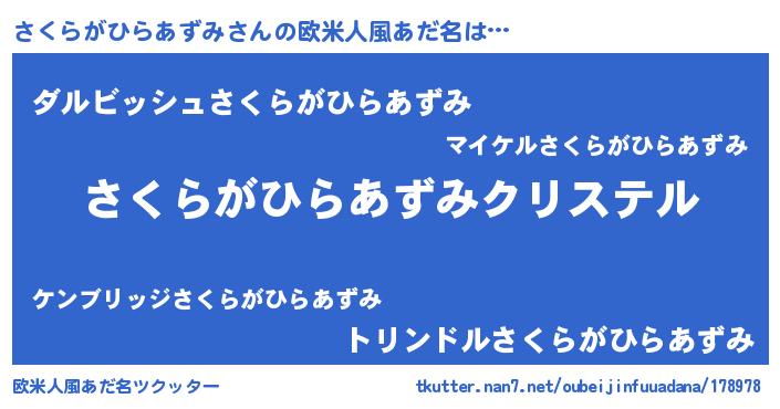 | ファンタジー風あだ名 | 『エターナルサクラガヒラアズミー』 |