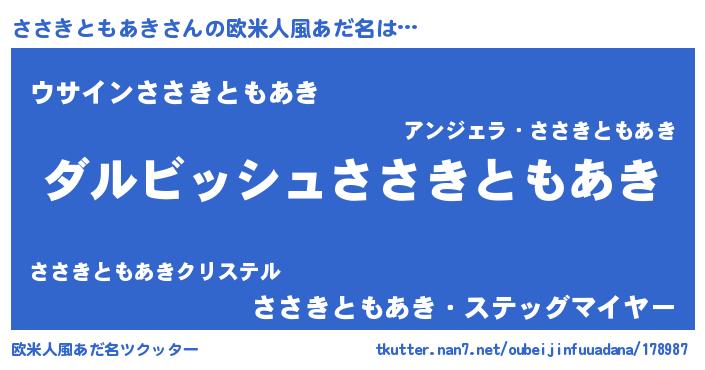 | 意味不明あだ名 | 『永久保存ささきともあき』 |