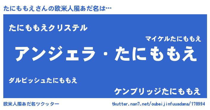 | ファンタジー風あだ名 | 『エターナルタニモモエー』『ゼタニトゥ』 |