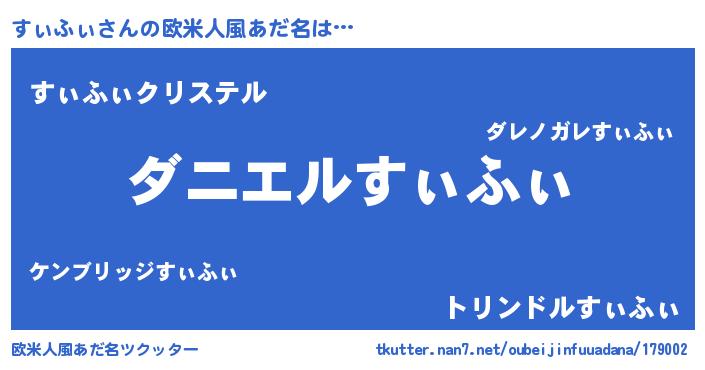 | 料理風あだ名 | 『すぃふぃのトマト煮』『すぃふぃごはん』 |