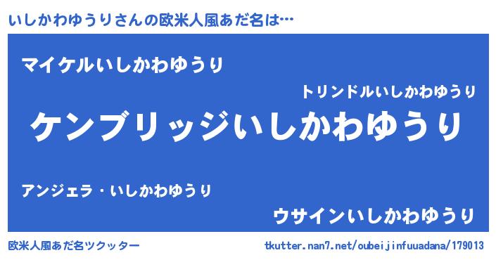 | 男性向けラノベタイトル風あだ名 | 『Re:いしかわゆうりから始める異世界生活』 |