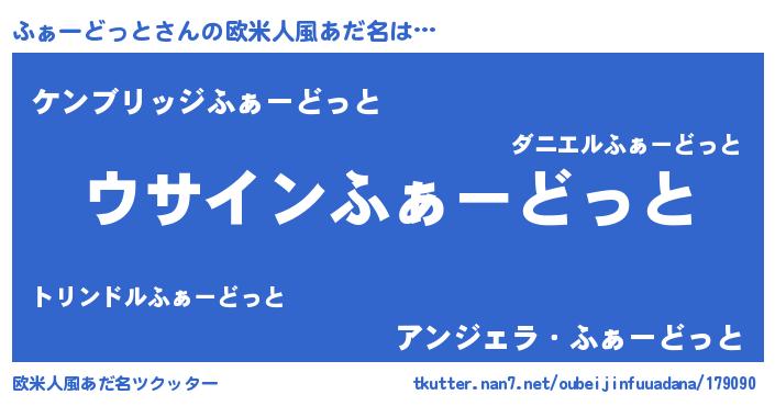 | 男性向けラノベタイトル風あだ名 | 『ふぁーどっとの嫁は女の子じゃないと思った?』 |