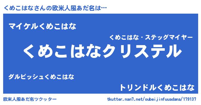 | 意味不明あだ名 | 『くめこはなフォーエバー』 |