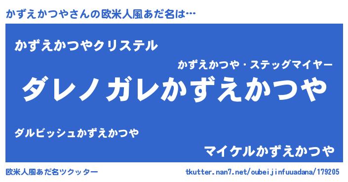 | 男性向けラノベタイトル風あだ名 | 『この素晴らしい世界にかずえかつやを!』 |
