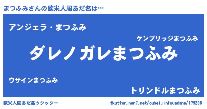 | 男性向けラノベタイトル風あだ名 | 『この素晴らしい世界にまつふみを!』 |