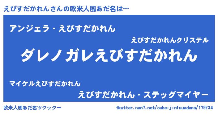 | 男性向けラノベタイトル風あだ名 | 『この素晴らしい世界にえびすだかれんを!』 |