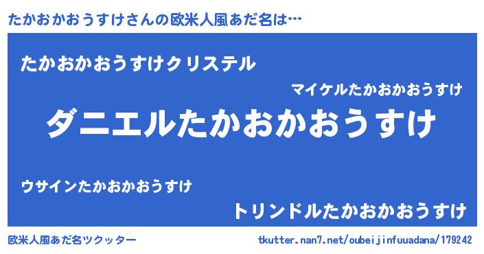 | 男性向けラノベタイトル風あだ名 | 『おまえをオタクにしてやるから、俺をたかおかおうすけにしてくれ! 』 |