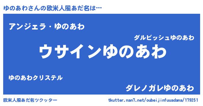 | 男性向けラノベタイトル風あだ名 | 『ゆのあわの嫁は女の子じゃないと思った?』 |