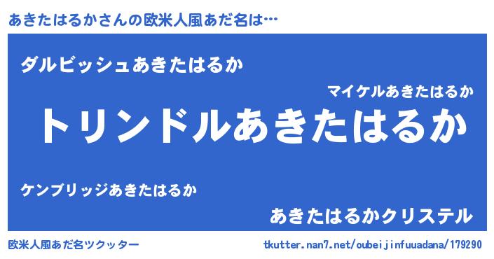 | 男性向けラノベタイトル風あだ名 | 『転生したらあきたはるかだった件』 |