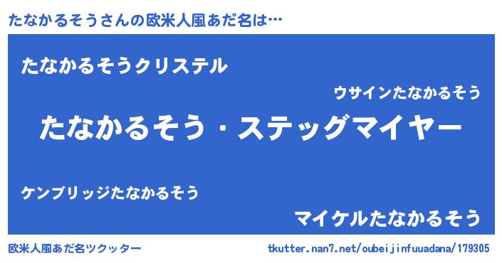 | 男性向けラノベタイトル風あだ名 | 『緋弾のタナカルソウ』 |