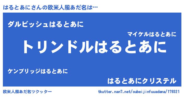 | 意味不明あだ名 | 『ヨモギ科はるとあに属』 |