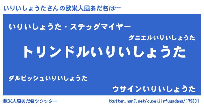 | 男性向けラノベタイトル風あだ名 | 『イリイショウタスレイヤー』 |