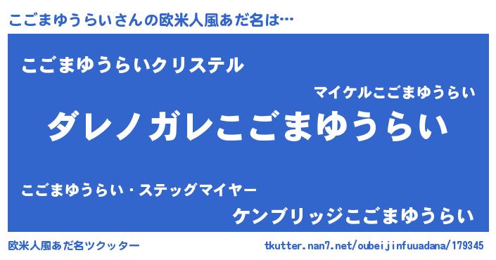 | 意味不明あだ名 | 『住所不定無職こごまゆうらい(2歳)』 |