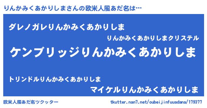 | 女子向けラノベタイトル風あだ名 | 『りんかみくあかりしまなんてお断りですっ。』 |