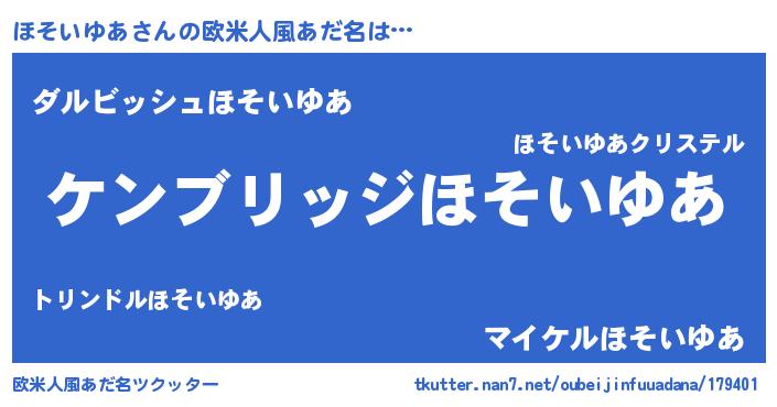 | 意味不明あだ名 | 『自称ほそいゆあ』『永久保存ほそいゆあ』 |