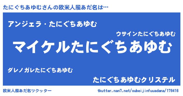 | 男性向けラノベタイトル風あだ名 | 『タニグチアユムアートオンライン』 |