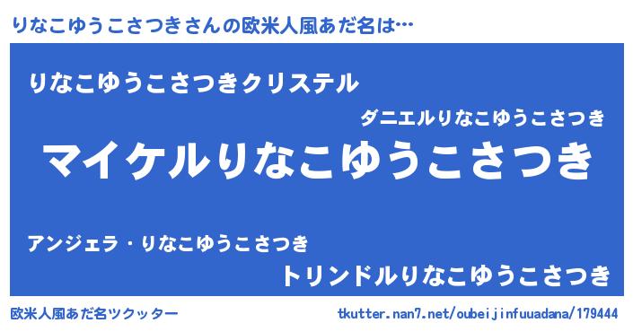 | 男性向けラノベタイトル風あだ名 | 『リナコユウコサツキアートオンライン』 |