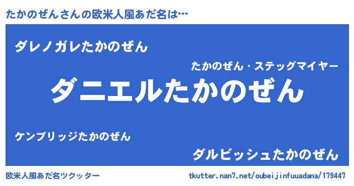 | 男性向けラノベタイトル風あだ名 | 『おまえをオタクにしてやるから、俺をたかのぜんにしてくれ! 』 |